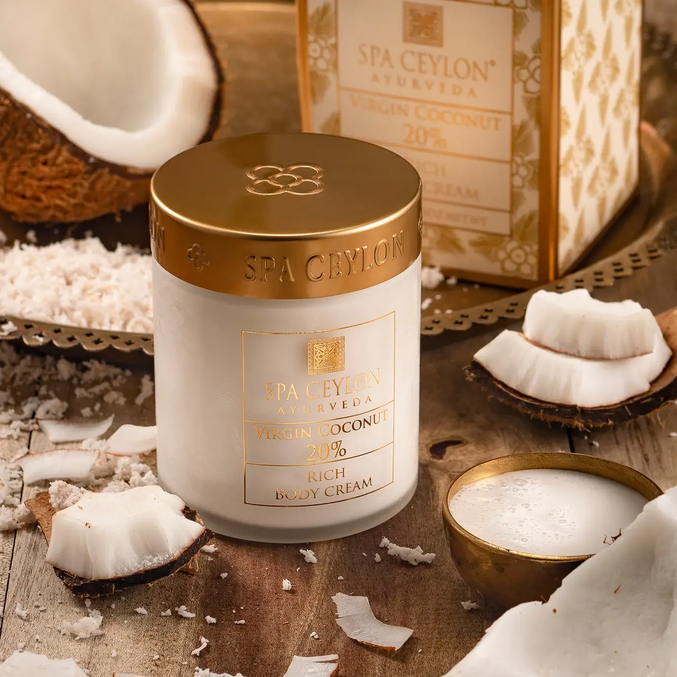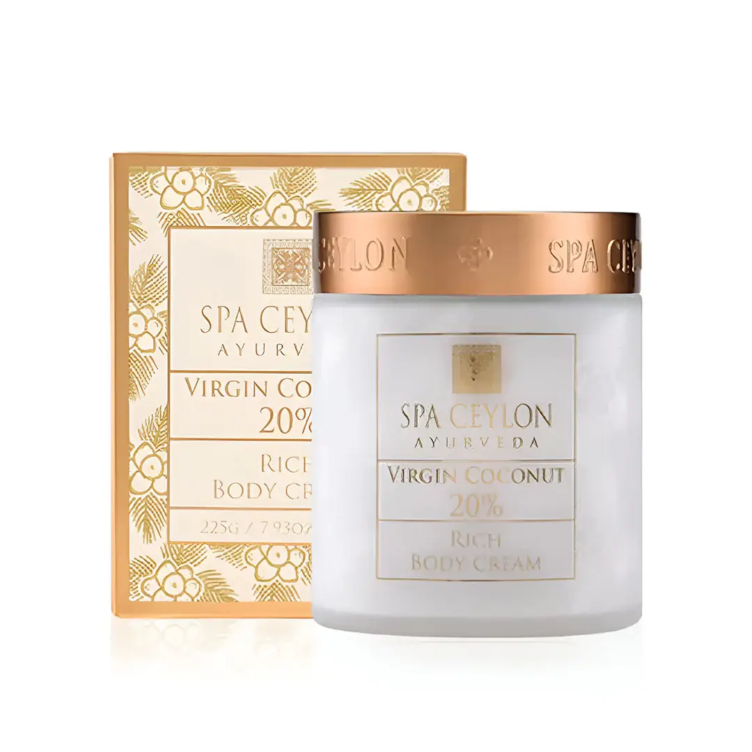 La VIRGIN COCONUT 20% Rich Body Cream es una crema nutritiva que proporciona hidratación y suavidad a la piel seca y áspera. Con aceite de coco virgen al 20%, es ideal para restaurar la barrera natural de la piel y mantenerla hidratada durante todo el día.