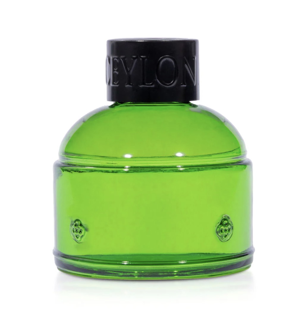 Desenrosca el anillo del cuello de la botella y retira la tapa interna. Vuelve a colocar el anillo del cuello, inserta las ramitas en la botella, colócala sobre una superficie plana y deja que el aroma se difunda suavemente.